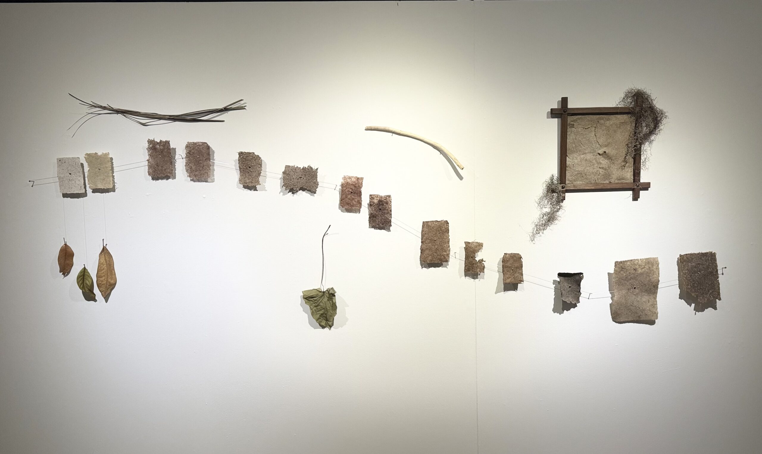 Through this process, Denton strives to understand how the pseudo-scientific signature of his research—through interactions with place, sourcing and extraction of flora, and discoveries surrounding the maceration and sheetforming of fibers—becomes embedded in the paper he makes. He works to express a story of transformation that urges individuals to think more deeply about their position in the history and future of their surroundings.