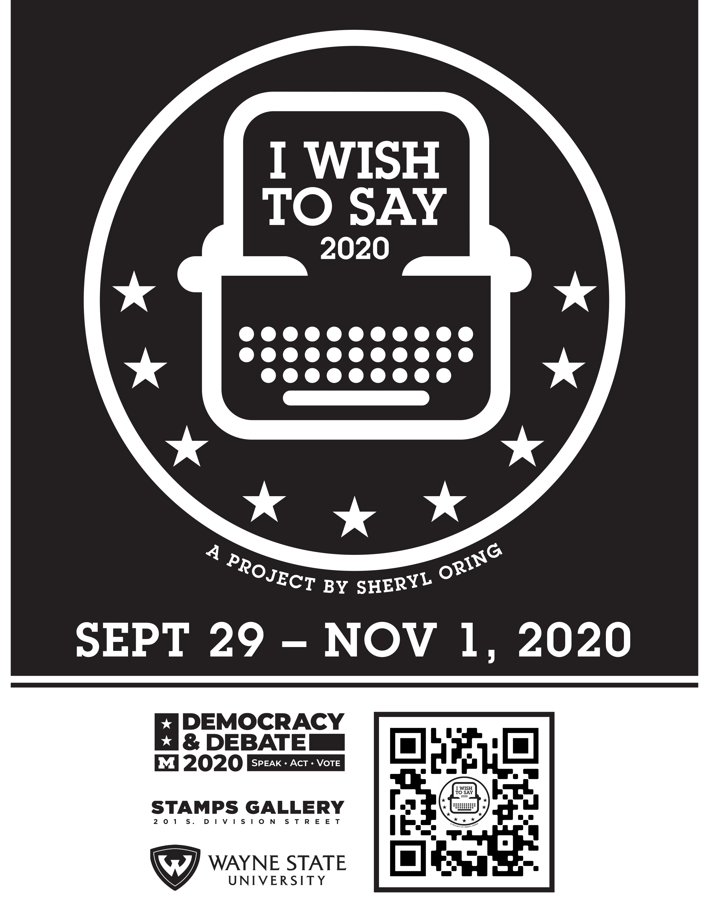 These messages will be shared via a virtual performance of her I Wish to Say project and will be typed up on postcards by student typists via zoom meetings and exhibited at Stamps Gallery at the University of Michigan in Winter 2020.