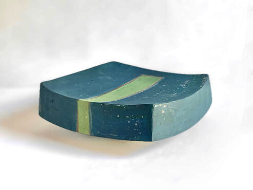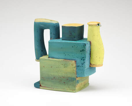 My ceramic vessels combine architecture, abstract painting, and color interactions to question the conventions of archetypal pottery forms. The vessels provide a platform for conveying and evoking emotional reactions. I construct re-imagined vessels comprised of intersecting geometric shapes. Through exaggerated proportions and visual mass, the pieces communicate a sense monumentality despite their modest scale. I use this framework as a basis for investigating two bodies of work.
