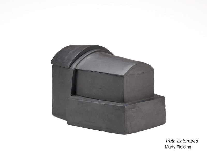 The second body of work examines how bereavement can be expressed through the context of a ritual object such as an urn or candle votive. Grieving is a universal experience that involves numerous emotions. As such, it has the potential to be applied to concepts like the loss of a societal consensus of truth in addition to the literal mortality of a loved one. These ritual objects establish monuments for our losses personally and as a society. Color is absent as a symbol of mourning. The pieces offer a focal point for intentional acts of acknowledging, grieving, and remembering.