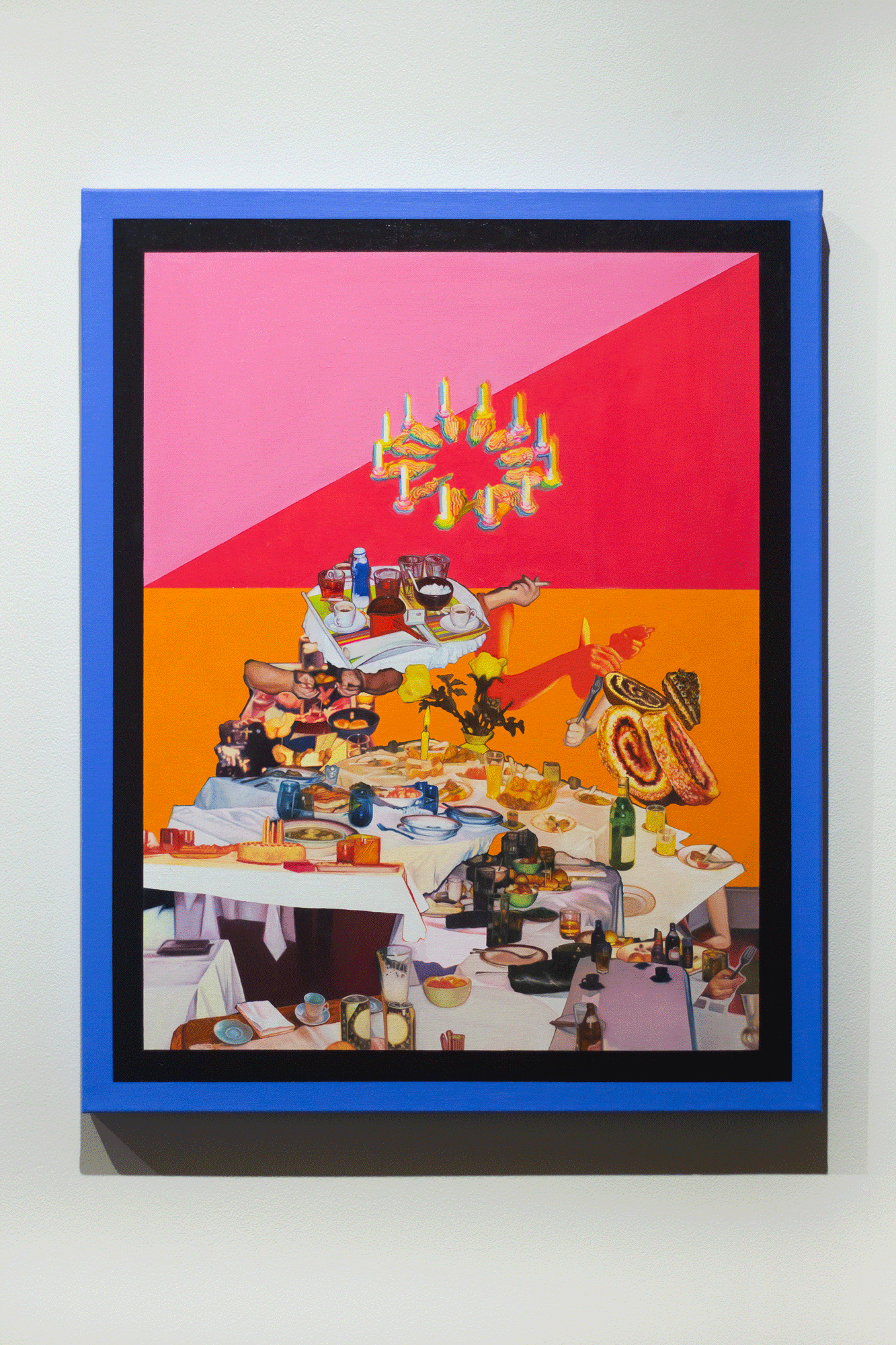 Alena’s work examines utopia, nation-building, and the archive within the expanded field of painting. Drawing from print media, cinema, design history, surrealism, and folklore, she creates dreamlike compositions that explore the tension between imagined futures and lived realities. Her practice reflects on post-communist perception and the politics of memory, evoking parallel universes where flatness and representation blur.